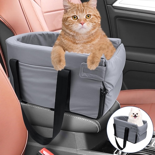 seggiolino auto per cani, seggiolino auto rialzato per cani di piccola taglia, seggiolino auto portatile per cuccioli, seggiolino auto per cani con console centrale e guinzaglio di sicurezza, tasche