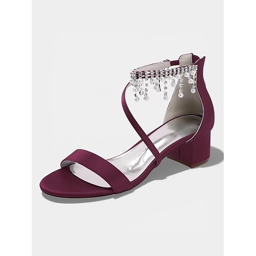 Weiße Brautschuhe mit Knöchelriemen aus Satin für Damen – spitze Hochzeitsschuhe mit Kristallanhänger für die Braut