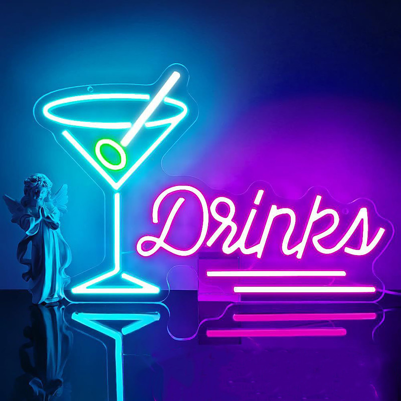 Cocktails Neon Sign for Wall Decor Bar Led Sign Dimmable Usb Powered for Indoor Bedroom Living Room Restaurant Home Bar Party Pub Night Club Man Cave Bistro Wall decorative lights
