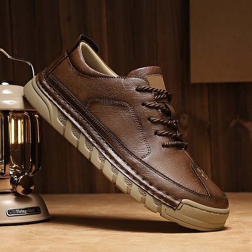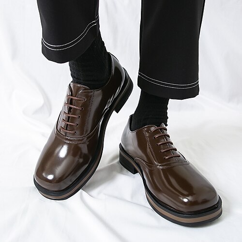 scarpe casual da uomo in similpelle marrone con suola resistente e design classico, perfette per il lavoro, per l'abbigliamento casual da lavoro e per l'uso quotidiano