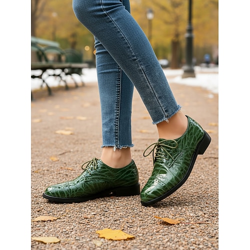 scarpe oxford da donna con motivo coccodrillo verde – classiche scarpe eleganti con lacci per occasioni formali, di lavoro e di festa