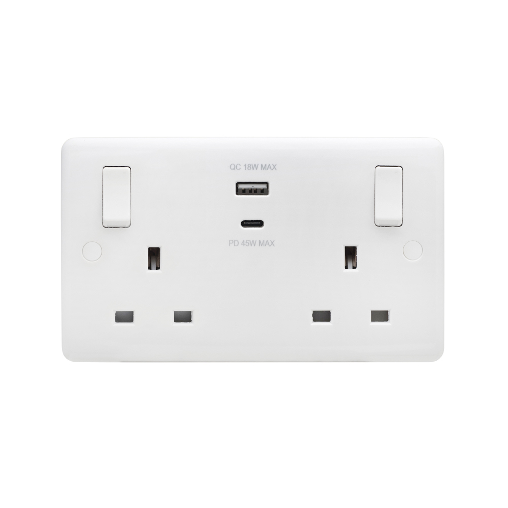 Lieber Silk White 13A 2 Gang Super-Fast Charge 45W USB A+C Socket