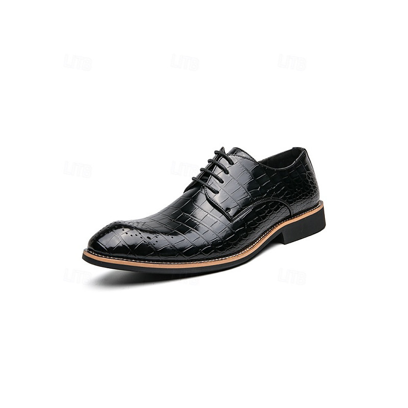 Men's Black and Brown Oxford Dress Shoes with Crocodile Texture - Formal Faux Leather Shoes for Business, Weddings and Parties