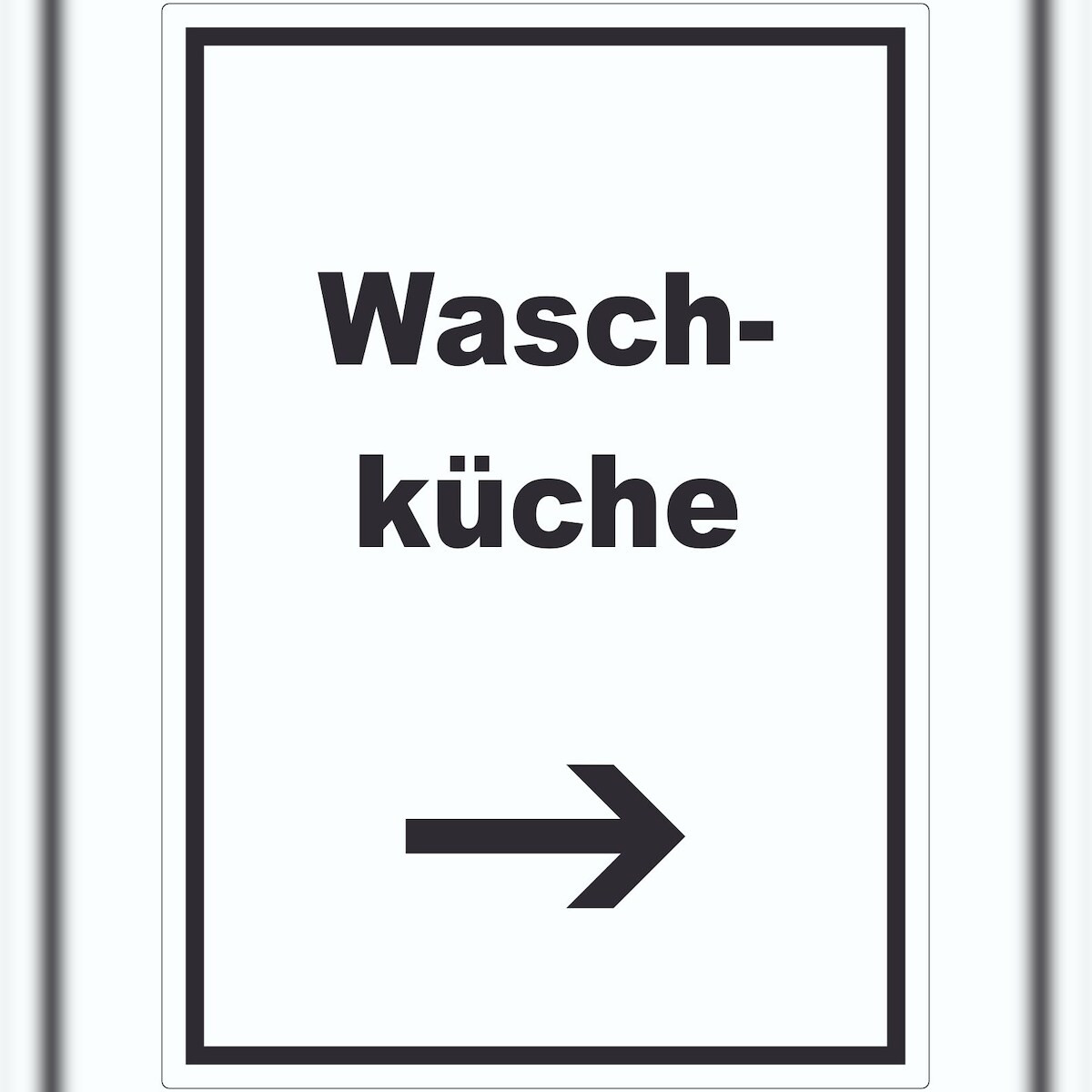 HB-Druck Waschküche Aufkleber mit Text und Richtungspfeil rechts Waschraum hochkant A2 (420x594mm)