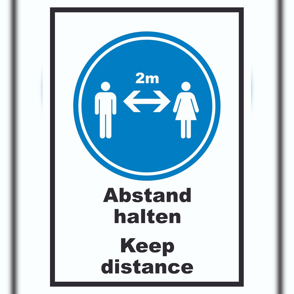 HB-Druck Abstand halten Keep distance Symbol und Text Schild A6 Rückseite selbstklebend