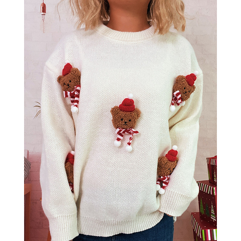 Women's Sweater Pullover Pom Poms Ugly Christmas Gifts Cute Animal Ribbed Crew Neck Knitted Long Sleeve Regular Tops Knit Christmas Outdoor Going out White Red Fall Winter