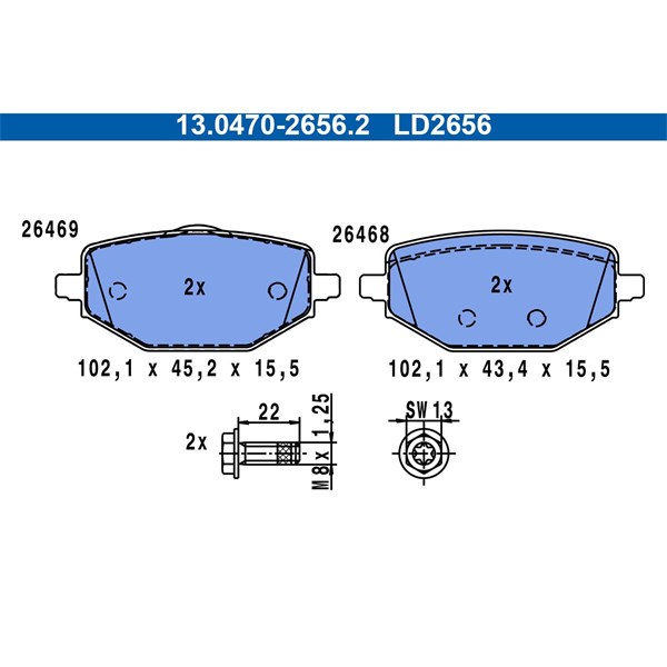 Jarrupalasarja, levyjarru, Taka-akseli Ate 13.0470-2656.2 - renault captur ii, megane grandtour iv, megane halvkombi iv - OE 44 06 023 61R