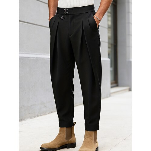 Per uomo Pantaloni Pantaloni Eleganti Chinos Tasca Pieghe Tinta unica Comodità Indossabile Quotidiano All'aperto Ufficio Streetwear Elegante Nero Verde