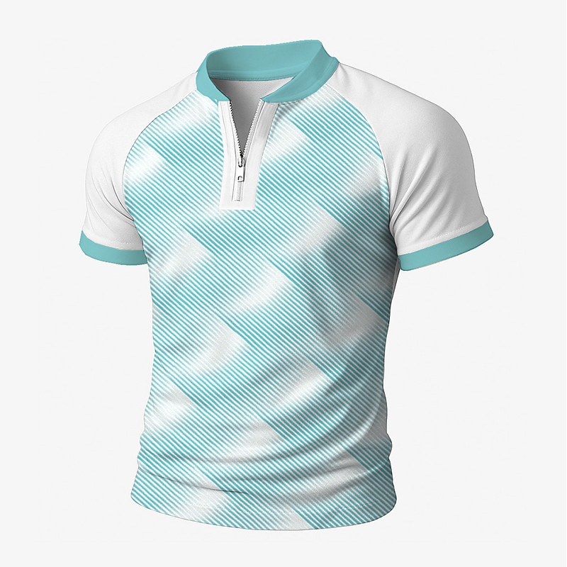 Men's Color Block Geometic Zip Polo Short Sleeve Standing Collar Business Sporty Leisure Business Athleisure Casual Daily Zipper 3D Print Summer Lake blue Robin's Egg Blue Green