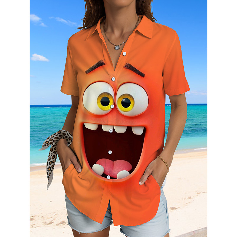 Women's Shirt Long Sleeve Button Down Blouse Graphic Letter 3D Vintage Tropical Daily Sleeveless Short Sleeve Shirt Collar Regular Tops Daily Pink Orange Green Summer Spring