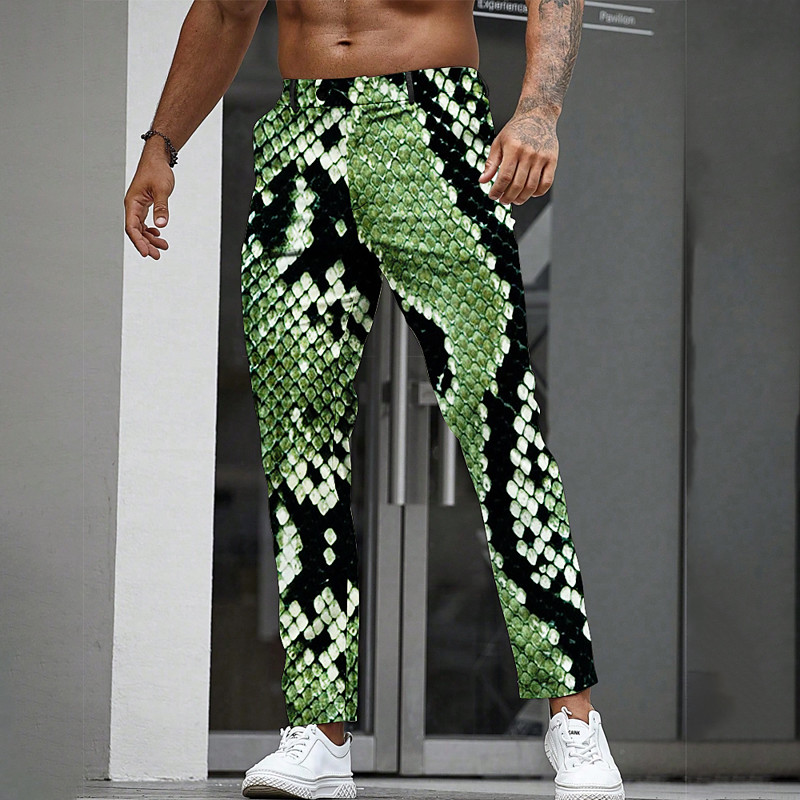 Men's Optical Illusion Snakeskin Dress Pants Trousers Suit Pants Mid Waist Casual Outdoor Straight Leg Pants with Pockets Spring Fall 3D Print Blue Green Gray