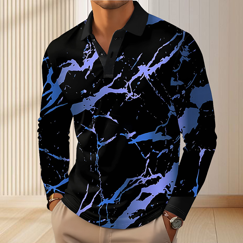 Men's Abstract Geometic Polo Long Sleeve Polo Shirts Lapel Casual Outdoor Street Athleisure Daily Wear 3D Print Buttons Spring Fall Winter Blue Gold Green