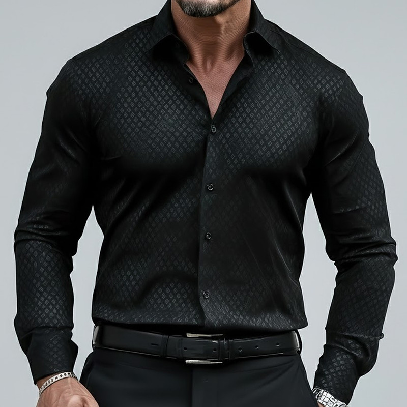Men's Geometic Line Long Sleeve Polo Shirts Collared Shirts Casual Business Casual Party Evening Wear Athleisure Daily Wear 3D Print Buttons Spring Fall Winter Black Blue Purple