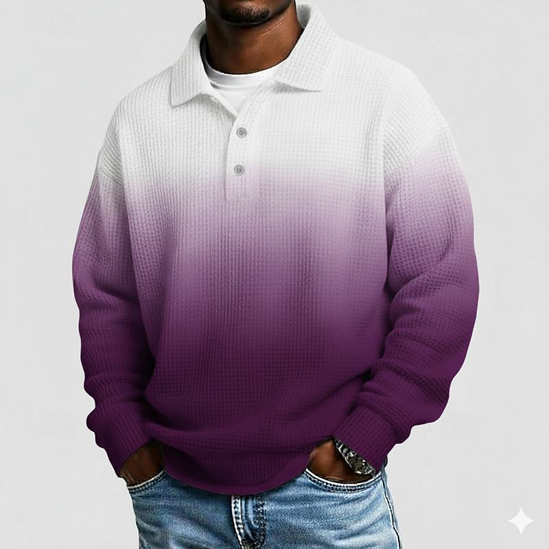 Men's Gradient Ramp Waffle Polo Shirts Long Sleeve Polo Shirts Lapel Sportswear Casual School Athleisure Daily Wear 3D Print Spring Fall Winter Blue Navy Blue Purple