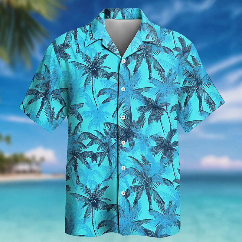 Men's Coconut Tree Tropical Plants Shirt Cuban Collar Shirt Summer Hawaiian Shirt Short Sleeve Hawaiian Vacation Holiday Beach Wear Summer Spring Camp Collar Shirt 3D Print Blue Red Purple