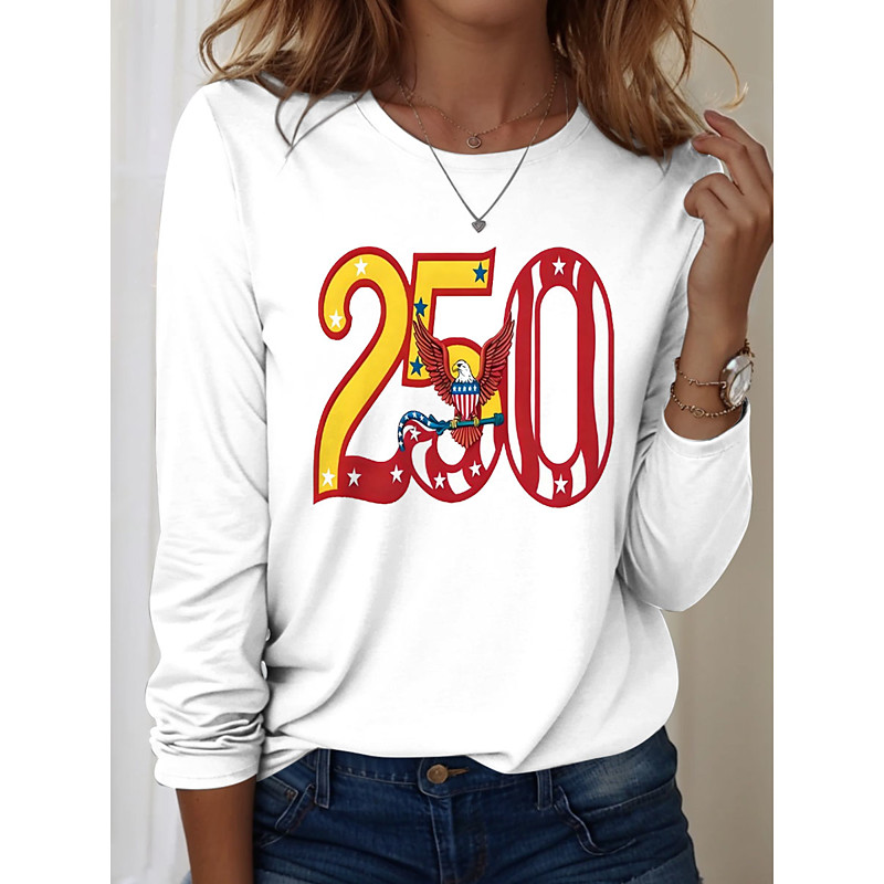 American 250th Women's Independence Day T Shirt Graphic USA Fashion Stylish Classic Long Sleeve Crew Neck Round Neck Regular Tops Daily Weekend Print Blue Black White Red Summer Spring Fall