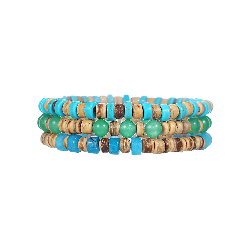 Handmade Natural Stone Beaded Bracelet Set for Men – Boho Surfer Style Wooden Turquoise Wrap Bracelet, Adjustable Tribal Jewelry for Beach, Travel Casual Wear