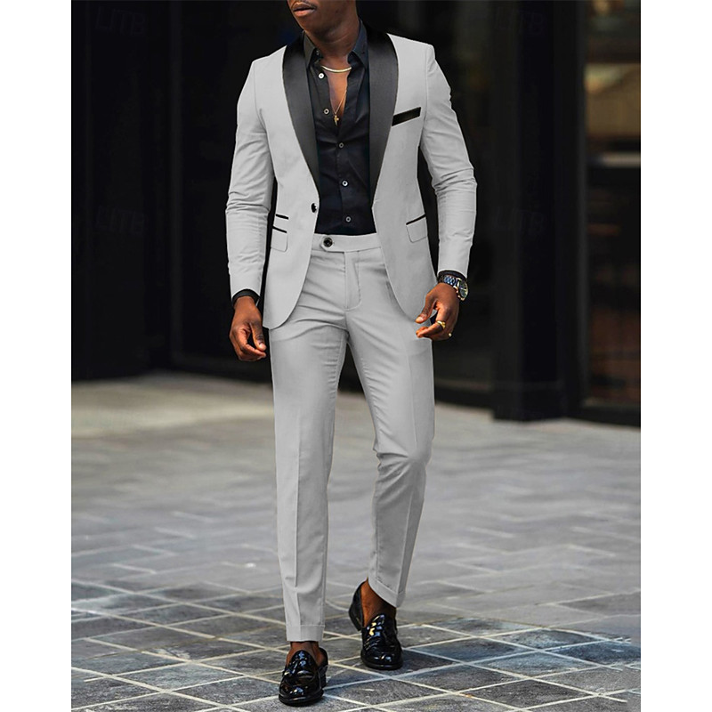 Men's BlazerDress Pants Blazer Suits Business Cocktail Party Wedding Party 2 Piece Fashion Casual Spring Fall Polyester Color Block Pocket Buttons Comfortable Single Breasted Blazer Dark Gray Black
