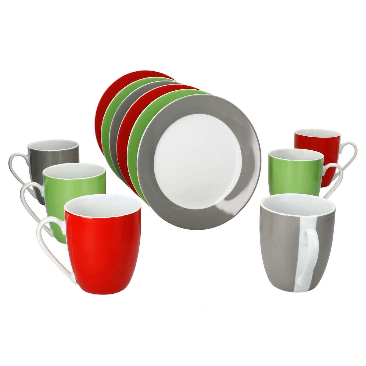 12tlg Frühstücksset VARIANT TRIO für 6 Personen aus Porzellan - je 2x Rot, Grau & Grün