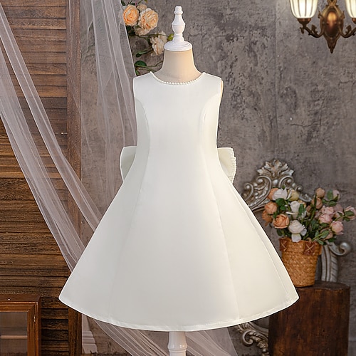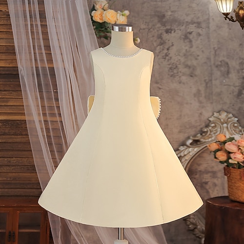Kinder Mädchen Partykleid Einfarbig Ärmellos Besonderer Anlass Geburtstag Prinzessin Süß Polyester Midi Partykleid Sommer Frühling Herbst 5-13 Jahre Weiß Champagner Rosa