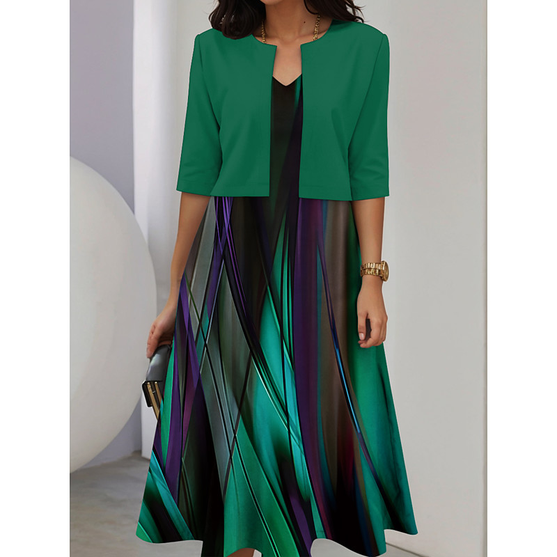 Women's Two Piece Dress Sets Midi Dress with Jacket Elegant A Line Dress Half Sleeve Casual Semi Formal Ombre Graphic Print V Neck Date Light Yellow Sky Blue Purple Regular Fit