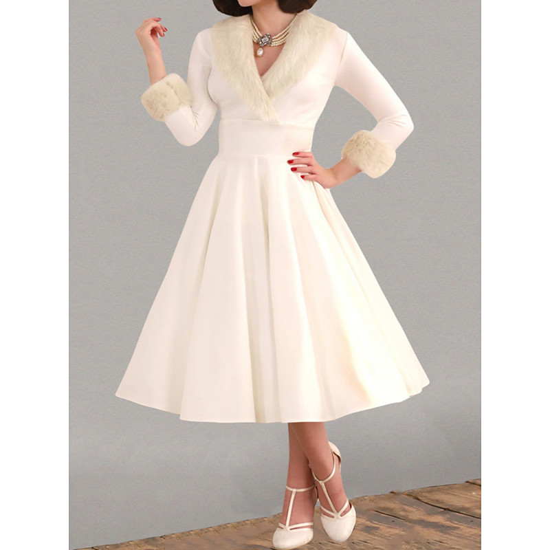 Women's Midi Dress A Line Dress Casual Daily Date Going out Regular Fit Plain 3/4 Length Sleeve V Neck Black White Red Spring Fall Winter