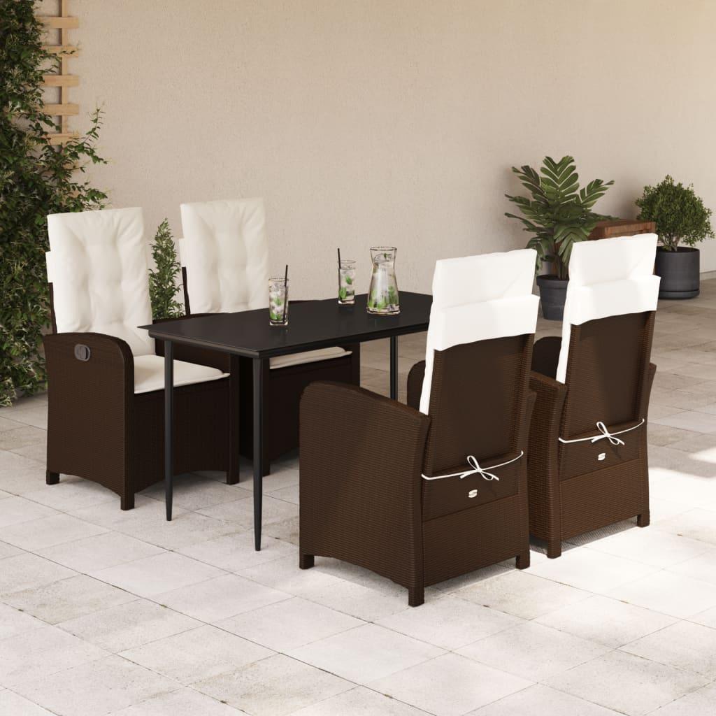Spisebordssæt til haven 5 dele polyrattan og akacietræ grå