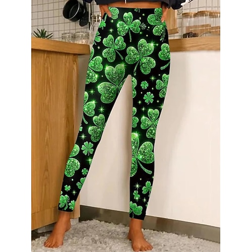 Leggings da donna per il Giorno di San Patrizio attivi vacanza moda lunghezza intera vita alta pantaloni con stampa trifoglio comfort outdoor comodi elastici festival nera verde nera bianca estate