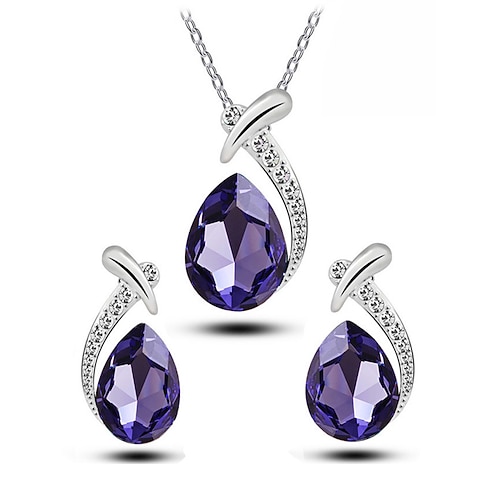 Schmuckset für Damen aus einer Legierung und Zirkonia – elegante Tropfenkette und Ohrringe, erhältlich in verschiedenen Farben, perfekt für Hochzeiten und Abendveranstaltungen