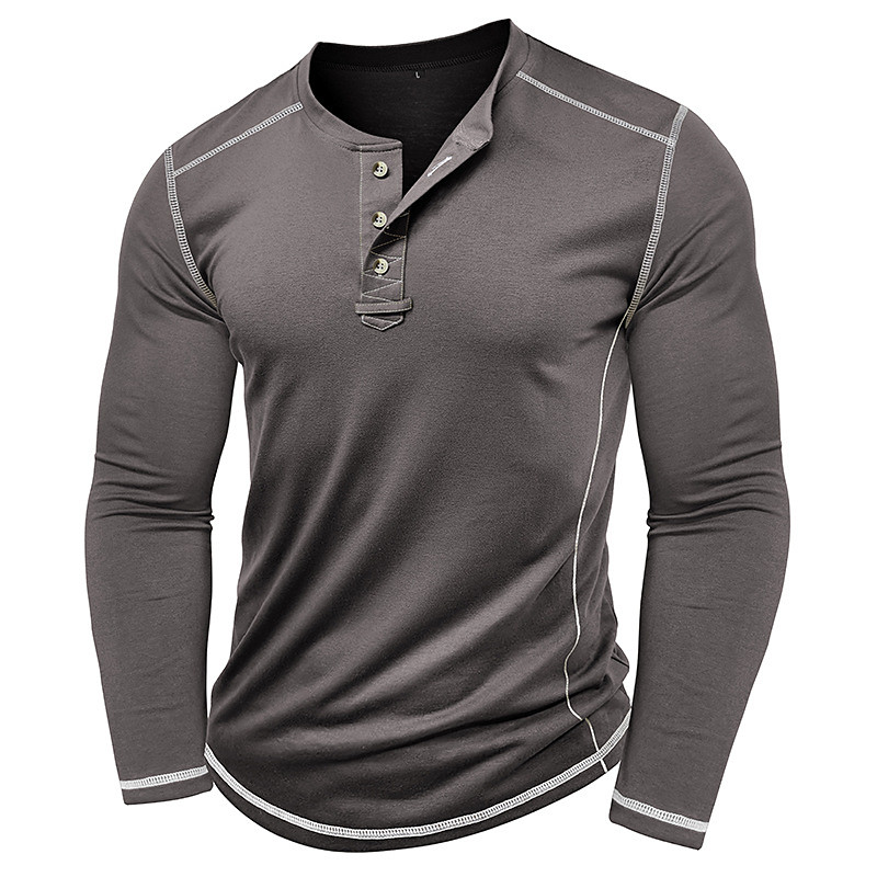 Men's T Shirt Henley Shirt Henley Top Long Sleeve Solid Color Vintage Casual Contrast Stitching Henley Outdoor Causal Casual Spring Fall Spring Fall Black White Gray Henley T-Shirt