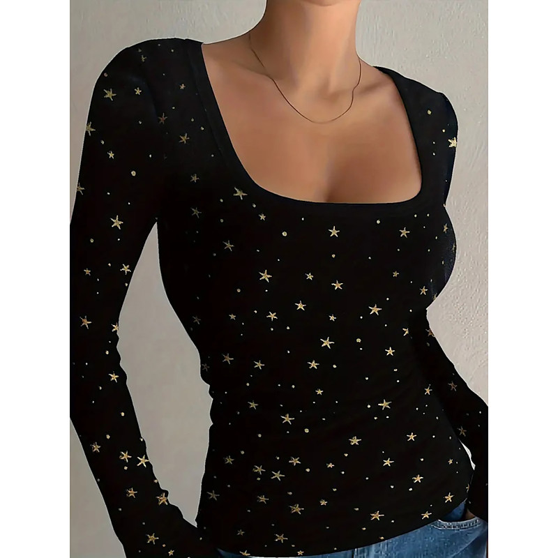 Women's Blouse Star Stylish Casual Long Sleeve U Neck Regular Tops Daily Print Black Spring Fall Winter