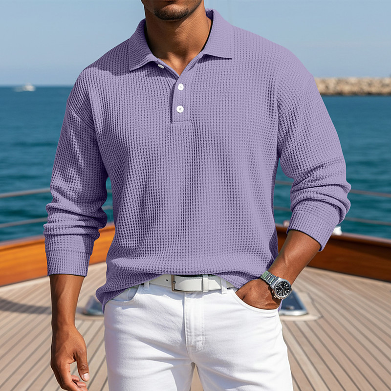 Men's Waffle Polo Shirts Textured Casual Business Ribbed Polo Collar Long Sleeve Fashion Solid Color Buttons Plain Fall Spring Fall Spring Summer Regular Fit Black Light Green Purple Green Khaki