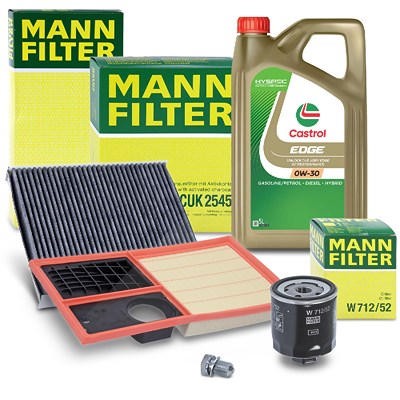 Mann-filter Inspektionspaket A + 5L CASTROL EDGE FST 0W-30 [Hersteller-Nr. 10492511] für Seat, VW, Skoda