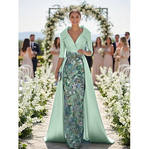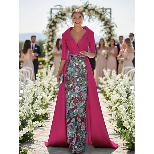 Linea ad A Sirena Tromba Tubino Colonna Lunghezza al pavimento Abito da invitata a nozze Abito Formale Abito da sera Abito da cerimonia per signora Manica 3/4 Mezza Manica Scollo a V Collo gioiello