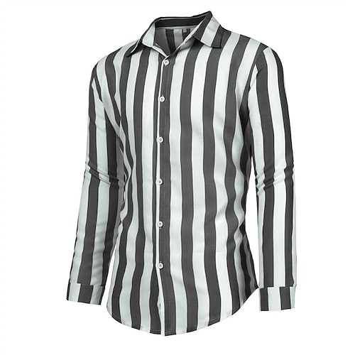 Herren Hemd Sommerhemd Freizeithemd Strandhemd Knopfhemd Gestreifte Hemden Schwarz Blau Grau Langarm Streifen Umlegekragen Urlaub Hawaiianisch Button-Down Bekleidung Polyester Mode Lässig Bequem