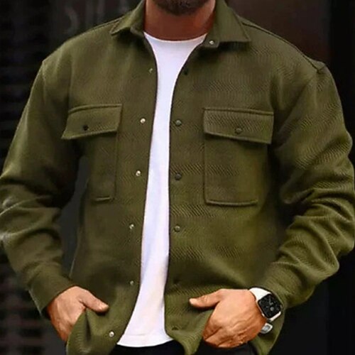Herren Leichte Jacke Freizeitjacke Arbeitsjacke Lässig Täglich Tasche Button-Down Frühling Herbst Einfach Fischgrätenmuster Streetwear Stilvoll Umlegekragen Regulär Blau Schwarz Braun Grün Khaki