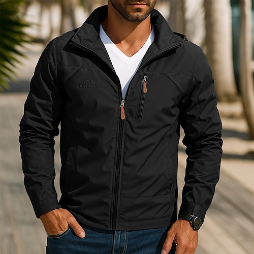 Per uomo Giacca da Esterno Giacca Tattica Giacca antivento Streetwear Casuale Impermeabile Antivento Tasca Primavera Autunno Tinta unica Casual Collo ripiegato Regolare Nero Blu marino Cachi Verde