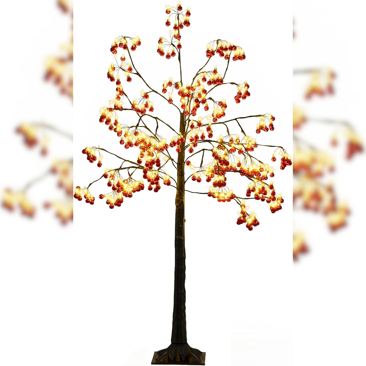 COSTWAY LED-Lichtbaum 150 cm, beleuchteter Lichtbaum mit 480 warmweißen LED-Lichtern und 384 roten Kugeln, LED-Baum, dekorativer Baum