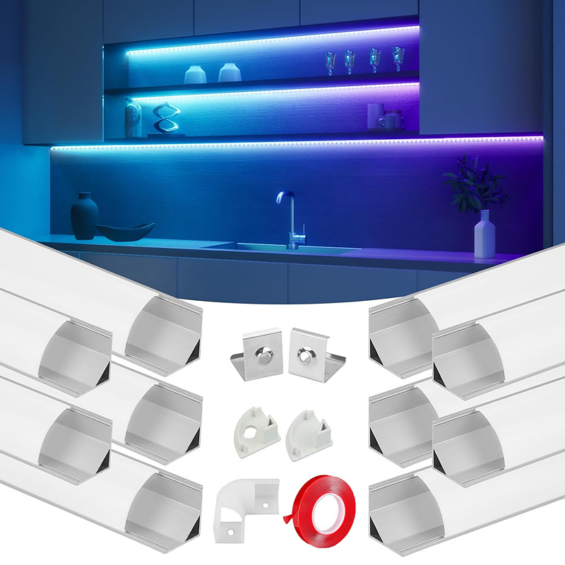 6PCS 10PCS 3.3FT/1M V Shape LED Channel Silver Aluminum LED Strip Diffuser Channel with Milky White Cover Frosted Corner Lighting Easy Installation No light strip included