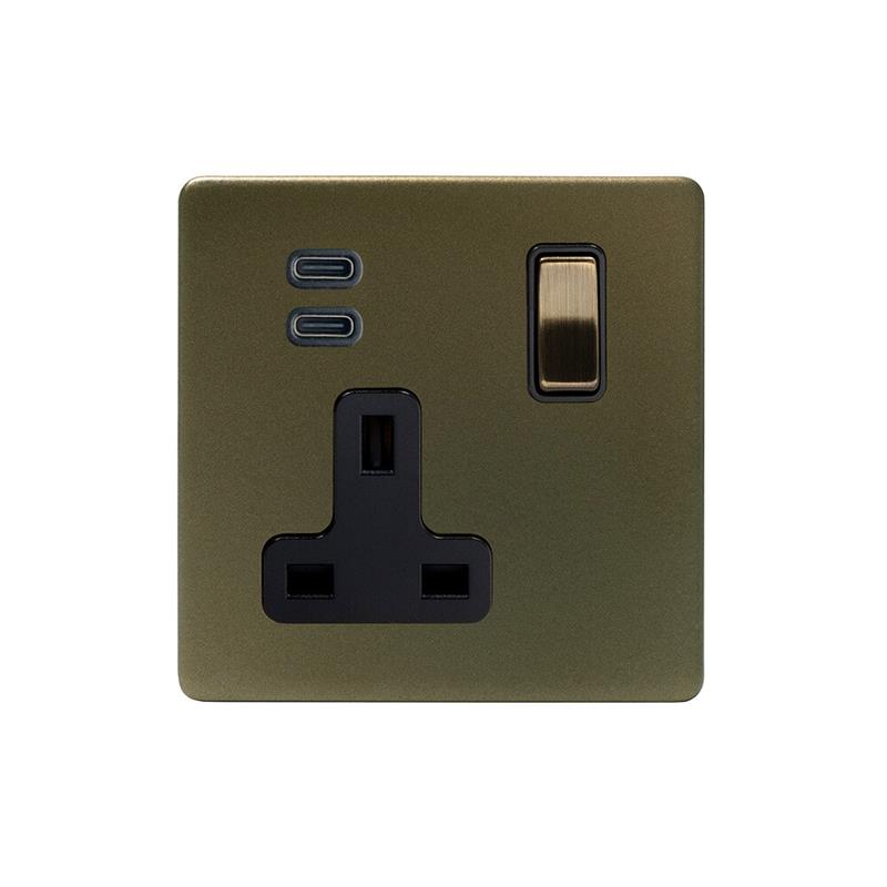 Soho Lighting Bronze 1 Gang USB C+C Socket (13A Socket + 2 USB C 3.1A Ports)