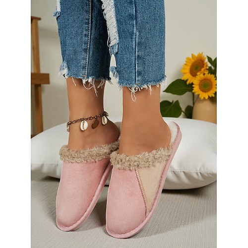 scarpe larghe da donna con fodera in pelliccia sintetica marrone e grazioso fiocco – calde scarpe invernali slip-on per casa, camera da letto e uscite invernali informali