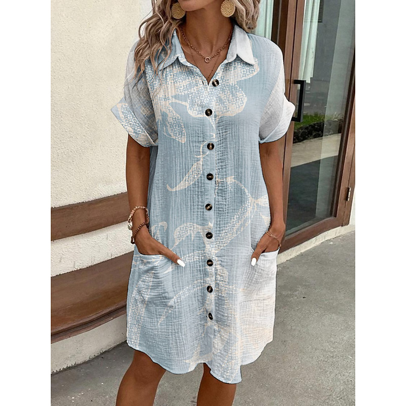 Women's Mini Dress Shirt Dress Casual Dress Print Dress Fashion Modern Daily Beach Weekend Regular Fit Floral Short Sleeve Shirt Collar Blue Summer Spring Fall Autumn