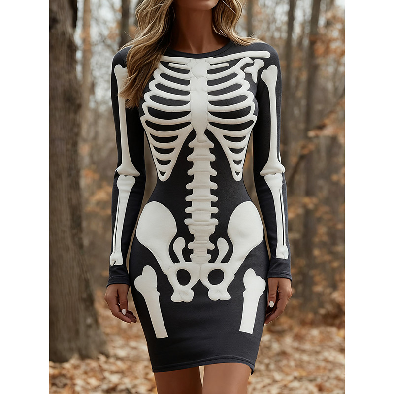 Women's Mini Dress T Shirt Dress Tee Dress Bodycon Dress Vacation Casual Party Daily Slim Graphic Skull Long Sleeve Crew Neck White Red Purple Green Spring Fall Winter