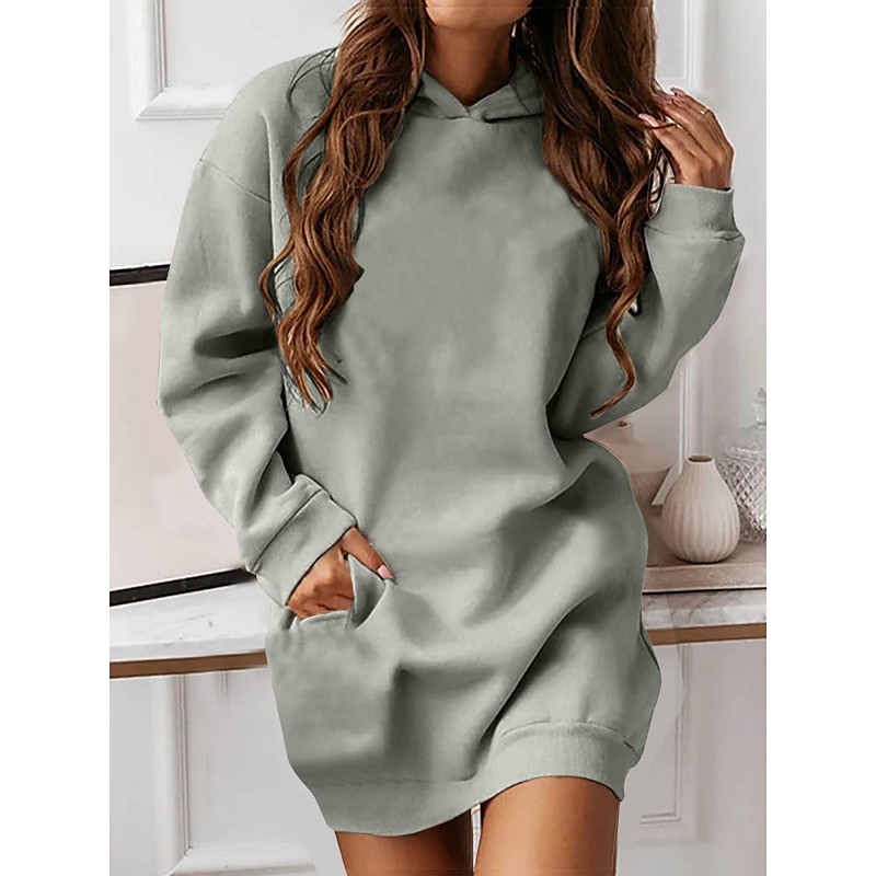 Women's Normal Midi Dress Hoodie Dress Casual Work Daily Regular Fit Plain Long Sleeve Hooded Gray Spring Fall Winter