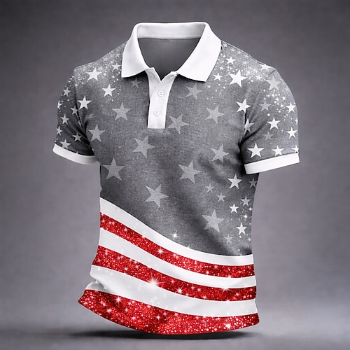 4. Juli 2026 250. Herren Amerikanische US-Flagge Poloshirts Kurzarm Polo-Shirts Hemden mit Kragen Lässig Outdoorbekleidung Ferien Festival-Outfit Knöpfe Sommer Frühling Blau Rote Grau