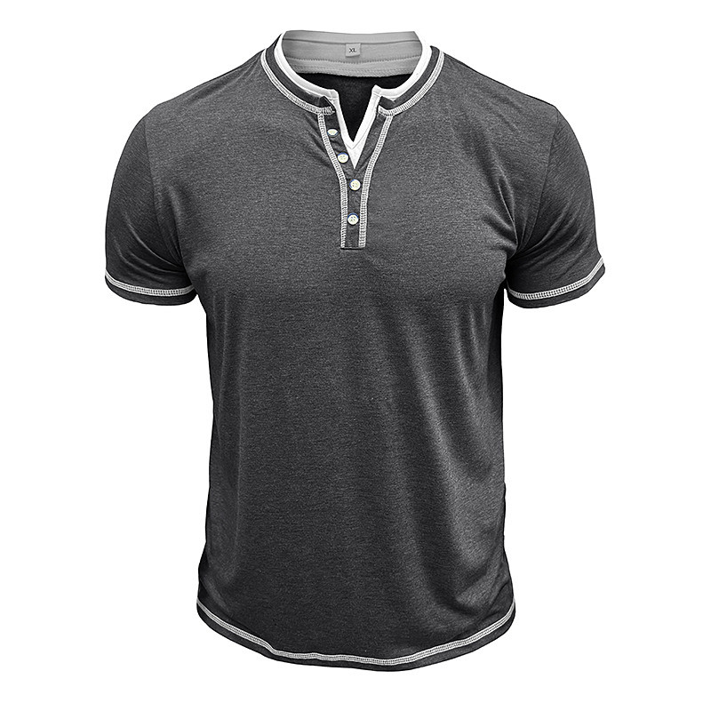 Men's Henley Shirt Tee Short Sleeve Plain Vintage Buttons Fake two piece Henley Outdoor Casual Daily Summer Spring Fall Dark Grey Black Light Blue Henley T-Shirt