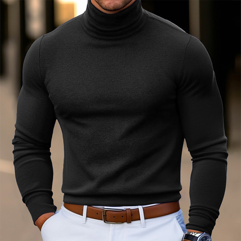Men's Tee Top Long Sleeve Shirt Mock Turtleneck Long Sleeve Turtleneck Pile Neck Fall Winter Spring Fall Solid Color Daily Casual Street Style High Neck Plain Formal Outdoor Street Light Blue