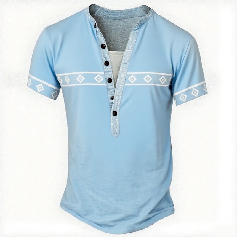 Men's Ethnic T Shirt Henley Shirt Tee Short Sleeve Designer Basic Ethnic Outdoor Casual Daily Summer Spring Light Green Light Blue Khaki Henley Henley T-Shirt