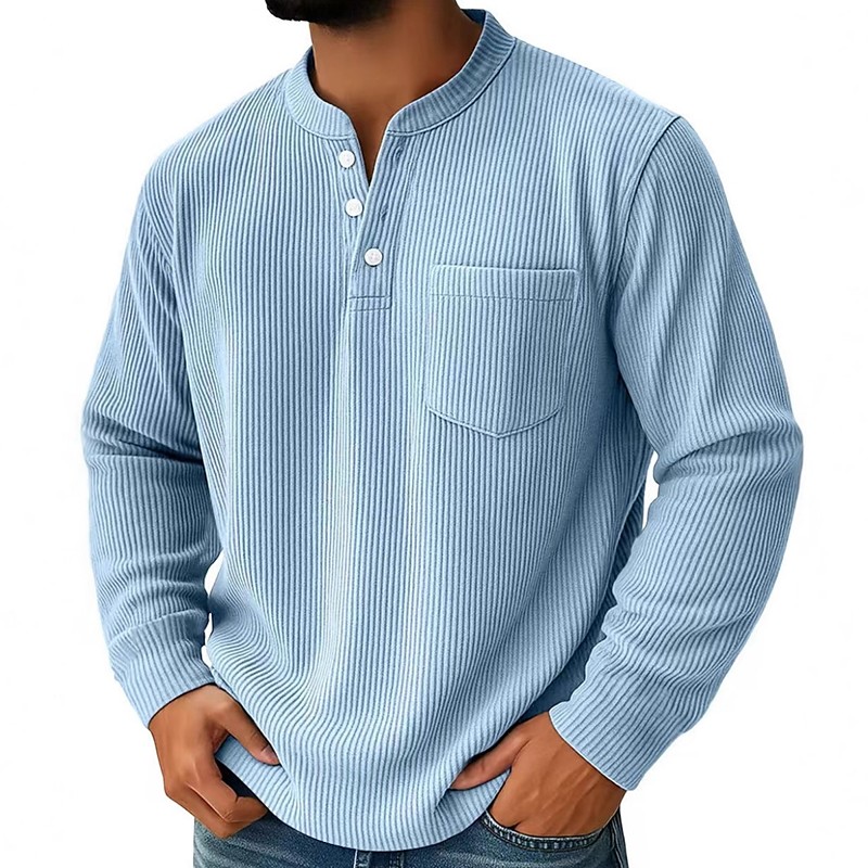 Men's Corduroy Shirt Henley Shirt Tee Long Sleeve Solid Color Plain Textured Fashion Designer Casual Pocket Buttons Warm Henley Casual Daily Outdoor Summer Fall Winter Light Blue Burgundy Navy Blue