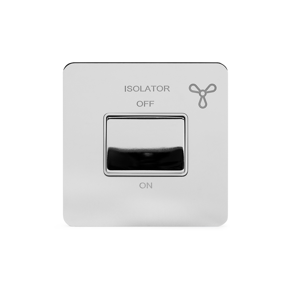 Soho Lighting Polished Chrome Flat Plate 10A 1 Gang 1 Way 3-Pole Extractor Fan Isolator Switch Wht Ins Screwless
